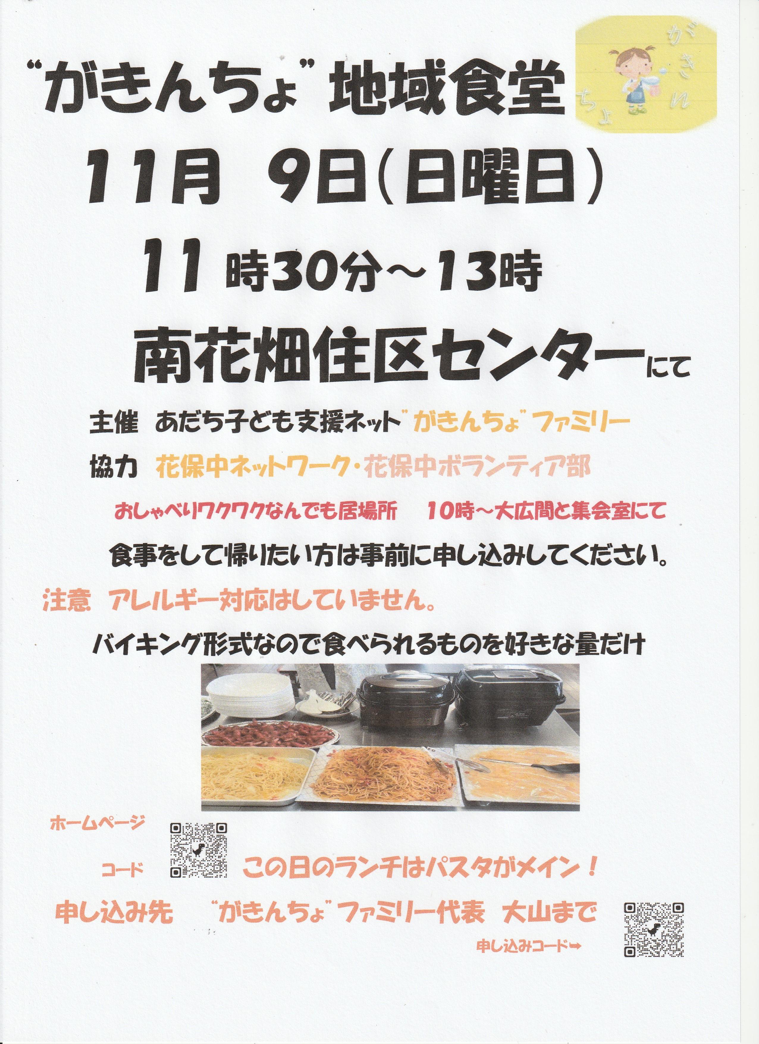 11月 9日 (日曜日) 地域食堂 11時30分~13時